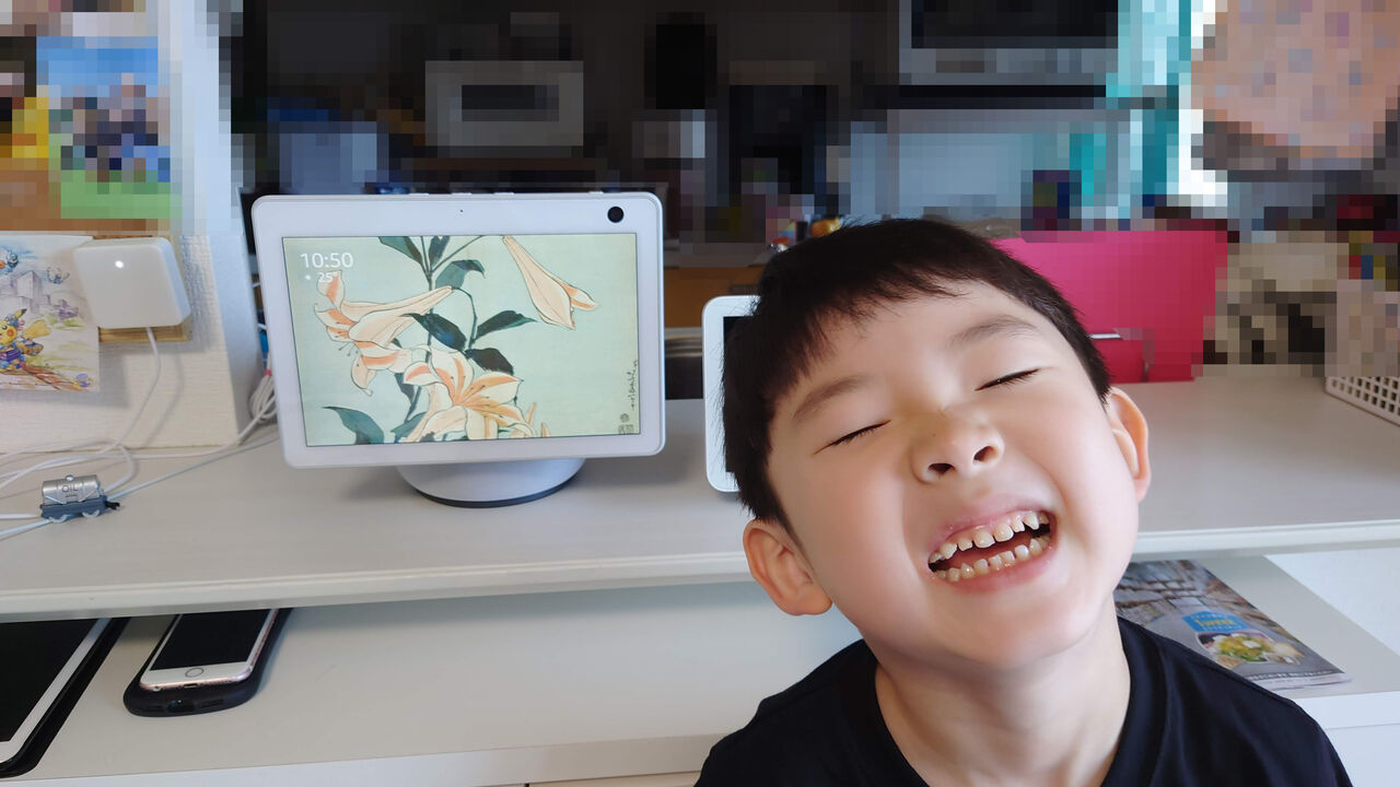 Echo Show導入後、最も恩恵を受けているのは息子①です。電灯のON/OFF、テレビのON/OFF、さらに疑問に思ったことの解決などあらゆる事でAlexaを活用してきました。最近では幼稚園で流行っている音楽をAmazon Musicで聴いたり、ジジババとのテレビ電話も自発的に行ったり、少し漢字が読めるようになってきたのでニュースを見たりと、ほとんど大人と変わらない使い方をしています。