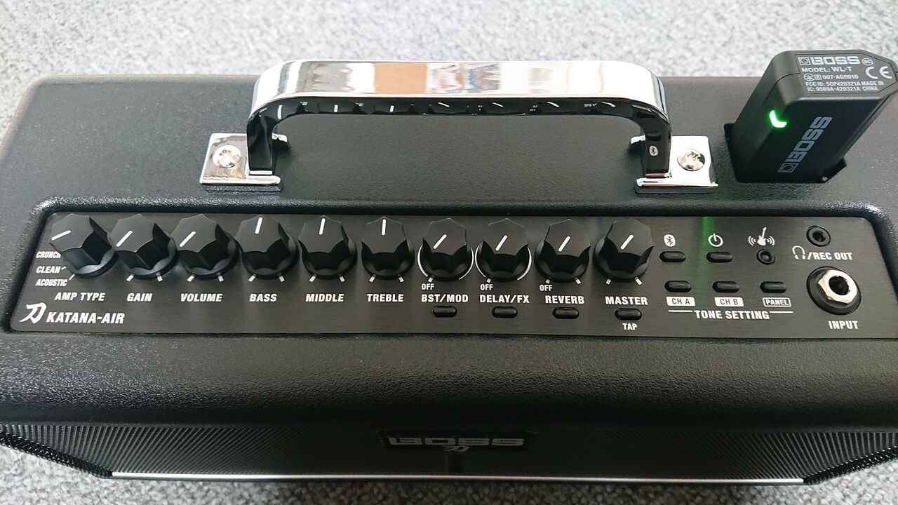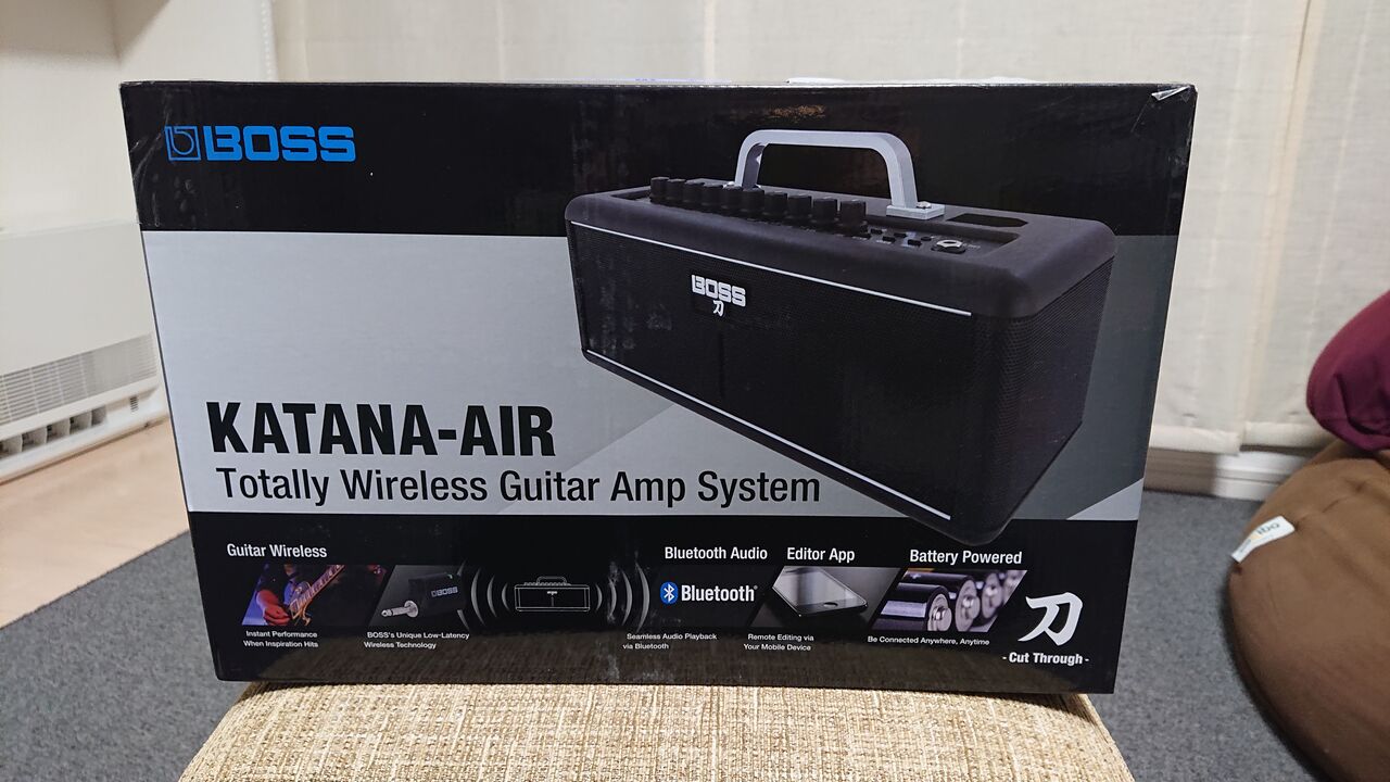 その時ふと思いついたのは、BOSS KATANA-AIRの存在です。確か2018年の上半期には発売されていた製品で、昨年一度試奏をして購入寸前までいきましたが、結局既存でもワイヤレスシステムをして組んでいたために導入を見送っていた経緯があります。