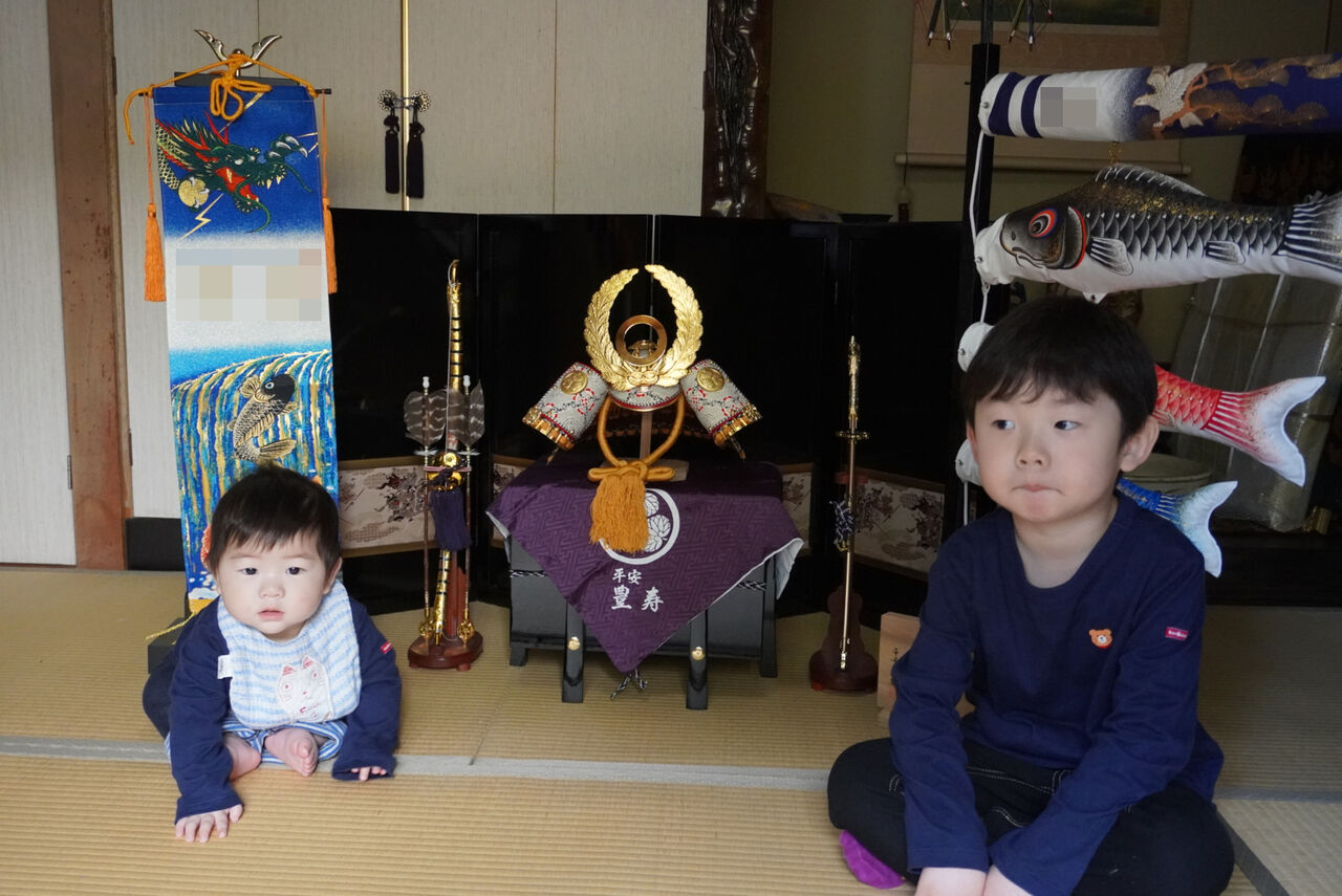 先日公開した記事に書きましたが、今回のGW終盤は私の実家に滞在していたため、兜飾りなどをわざわざ移動する手間もありませんでした。私や嫁さんとしては、息子②にとっては初節句となる今回は写真だけでも残しておきたいという思いから、本来は直前だと縁起が悪いため4月中旬頃に設置する必要がある(らしい)兜飾りを、端午の節句前日に取り出します。