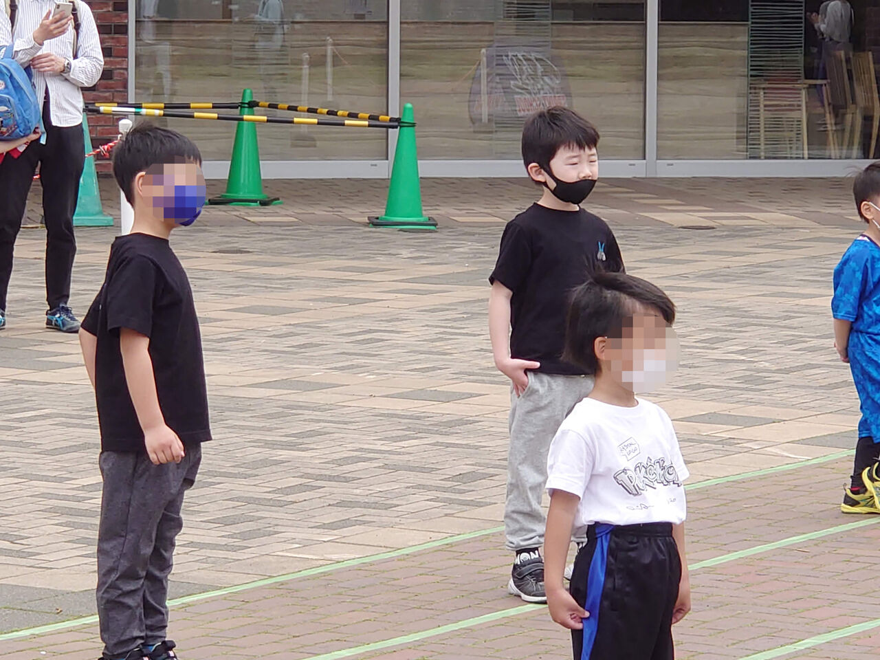 幸いなことに、息子①とお友達2人は幼稚園である程度しごかれている(軍隊幼稚園と影で言われるほど)事もあって、石原塾のノリに平然と対応ができていました。ただ、きちんと対応できている子は5人程度で、中にはコーチの言うことを全く理解できない子もおり、ちょっとしたカオスな場面もありました。