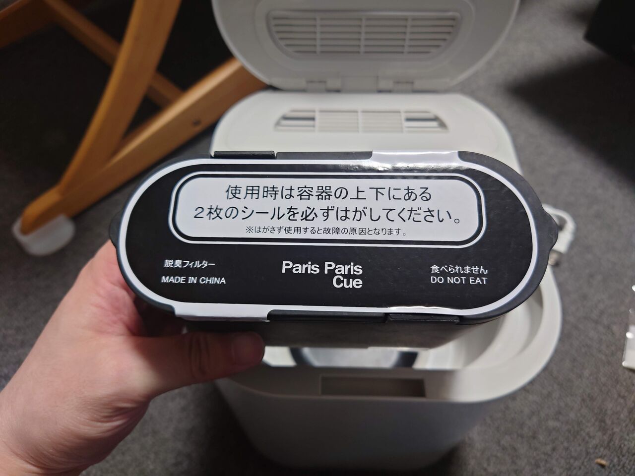 なお、購入後に必要な作業は脱臭フィルターの装着だけです。こういった機器が活躍するキッチンを主戦場とする奥様方は、おおよそ機械に強くない場合が多いので余計な事を色々しなくて良いのは素晴らしいポイントです。