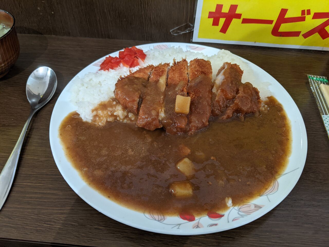 今回は、生姜焼き定食とカツカレーを注文しました。生姜焼き定食にはおにぎりが2つ付きますが、具をカウンターに貼ってある種類の中から選ぶ方式です。注文から提供までは結構早く、手慣れている印象です。