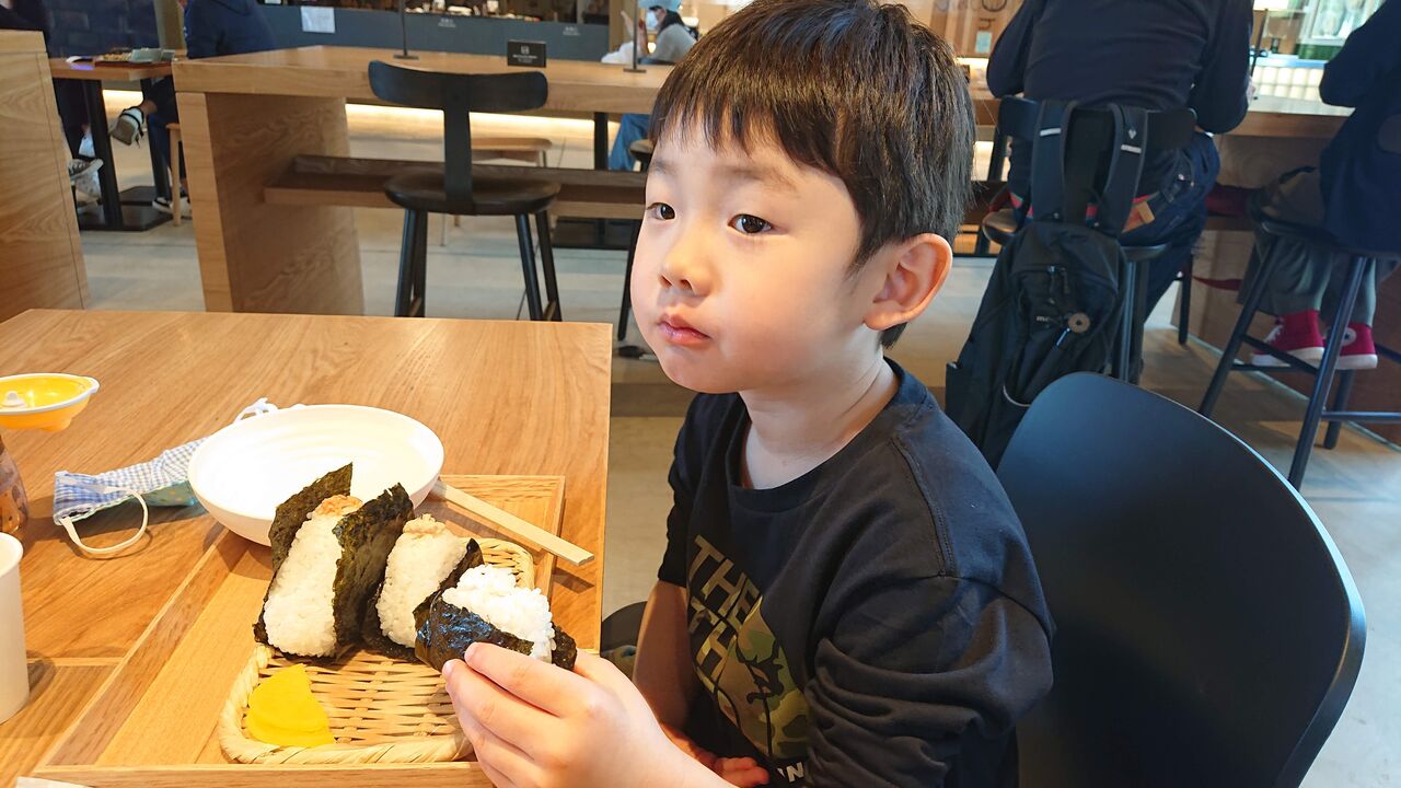 息子①はおにぎりを食べたいというので、フードコート内にあるおにぎり屋さんで注文。嫁さんは辛い担々麺を食べていました。