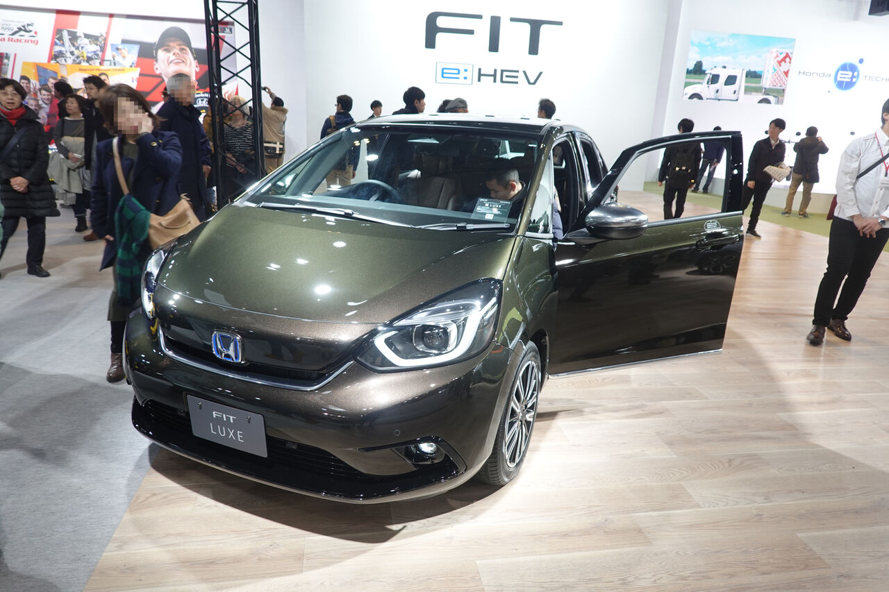 今回我が家で最も真剣に見たのは、嫁車ラパンの後継として選択肢に入るであろう新型FITです。詳細はまだわかりませんが、いくつかのライン(グレード)があるようです。嫁さんは、展示してあったFITの色が気に入ったようです。