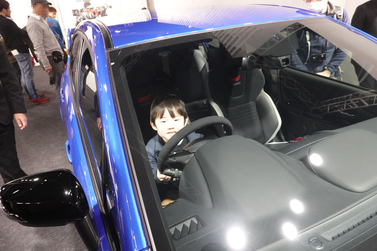 息子①が今回のモーターショーで最も気になった車は、以前から大好きなWRXです。北海道ラリ-を現地観戦して以降、彼のWRX、いやスバル好きは定着しているようです。マクラーレンや他のスポーツカーにはそれほど反応しなかったのですが、WRXの運転席には座りたいと自分から言ったので驚きました。息子①が大人になる頃に、こういった車はまだ存在できているのでしょうか。