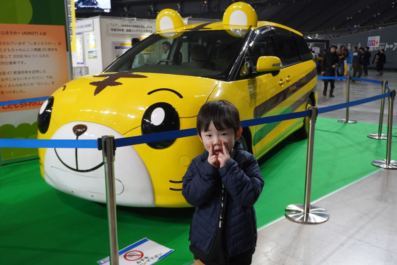 また、帰り際にしまじろうカーの展示も発見し、毎日しまじろうをプライム・ビデオで見ている息子①はとても嬉しそうにしていました。