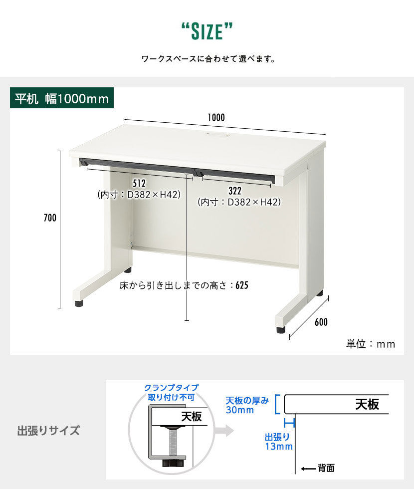 - サイズ : 幅1,000mm × 奥行 600mm程度 × 高さ 730mm迄