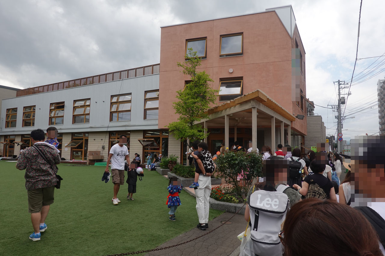昨年は近隣の民間駐車場が満杯だったため、嫁さんと息子を降ろして近くのコンビニで待機していましたが、今年は祭り開始時間より早く幼稚園に到着するように動いたため、近隣の駐車場に車を停める事ができました。たかが幼稚園の夏祭りではありますが、入場待機列が100m程度まで伸びた光景は壮観でした。息子の行く幼稚園はこの大人数を収納しきれるほどの大きさでは無く、すぐに校舎内は大混雑し熱気ムンムンです。