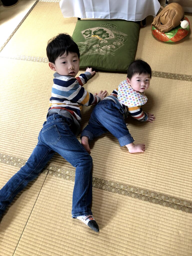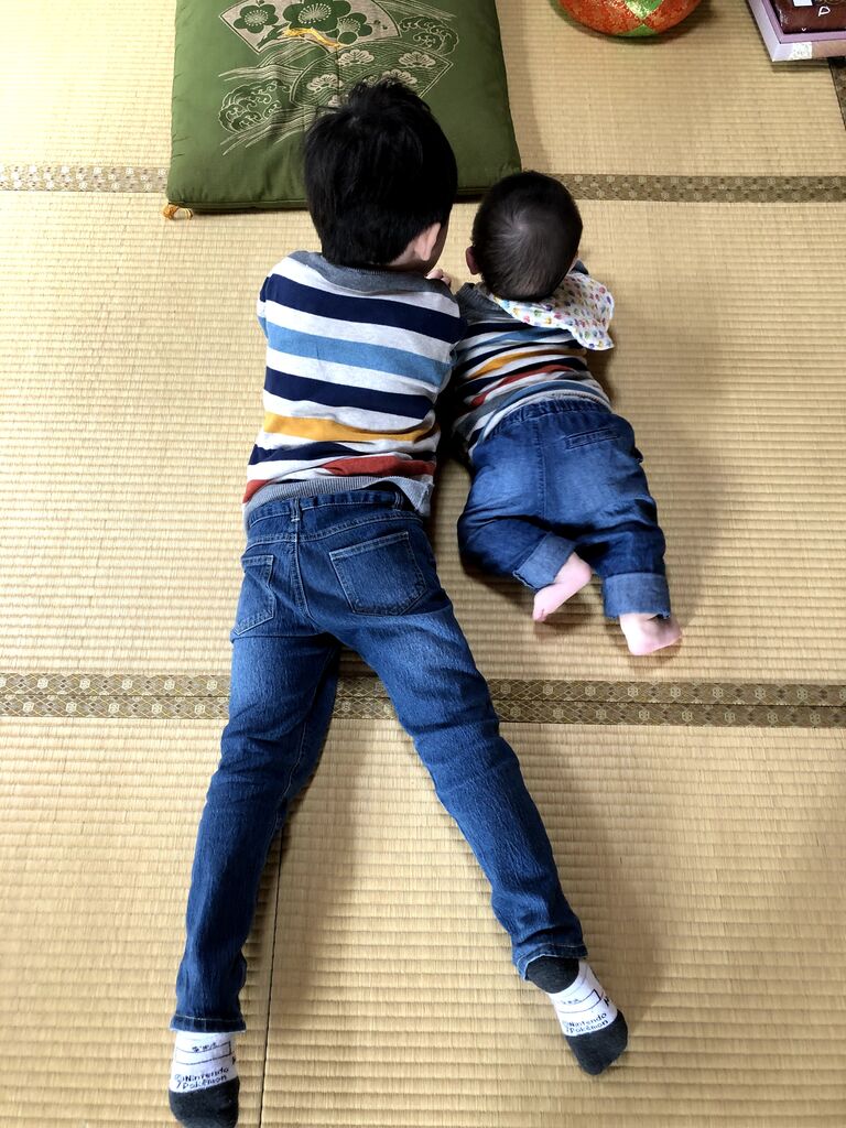 しかし、ただただ家でじっとしていたわけではありません。こんな時ですが、なるべく人のいない空き地で遊んだり、お絵かきやゲームなど家の中での遊びを増やしたり、さらに何かある度に息子①と②にお揃いの服を買ってきたり、と楽しむ工夫はしてきました。