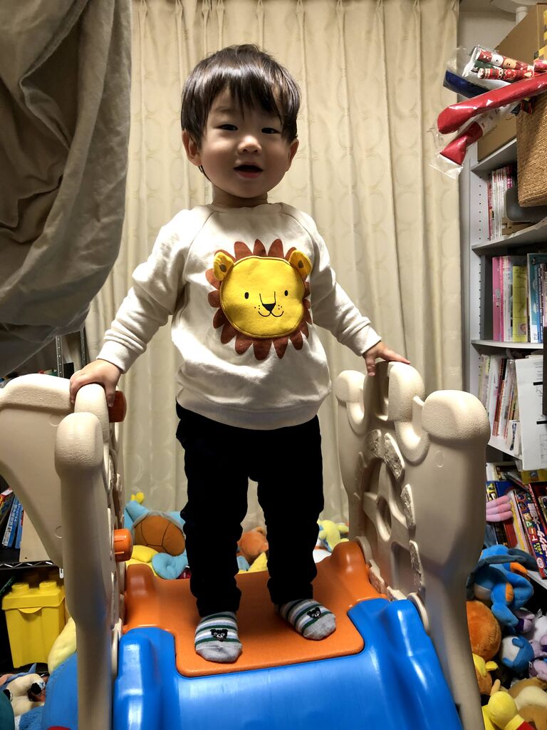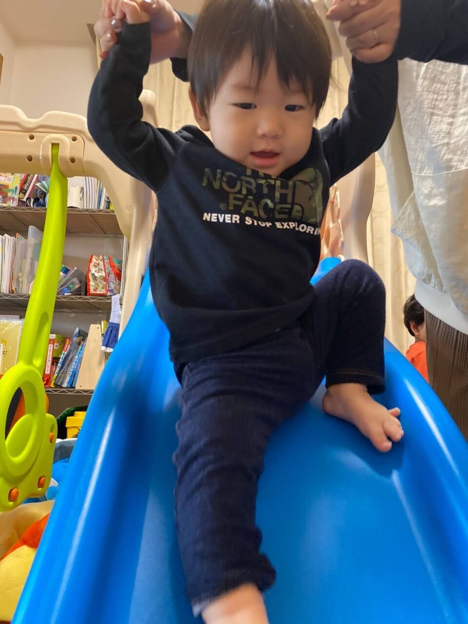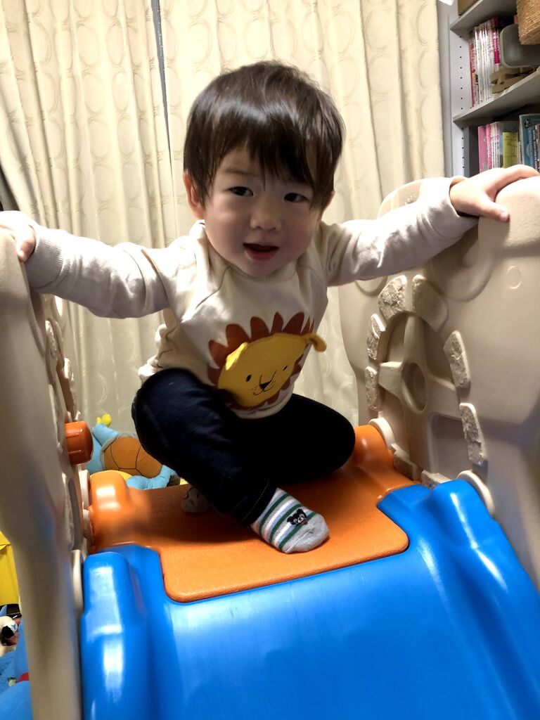 そして、スクランブルプレイセンター設置から5日が経過した日、自力でハシゴを登って滑り台を滑る息子②がいました。