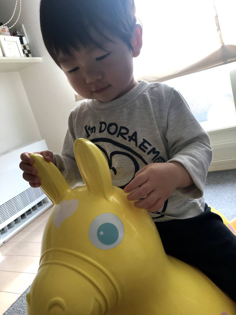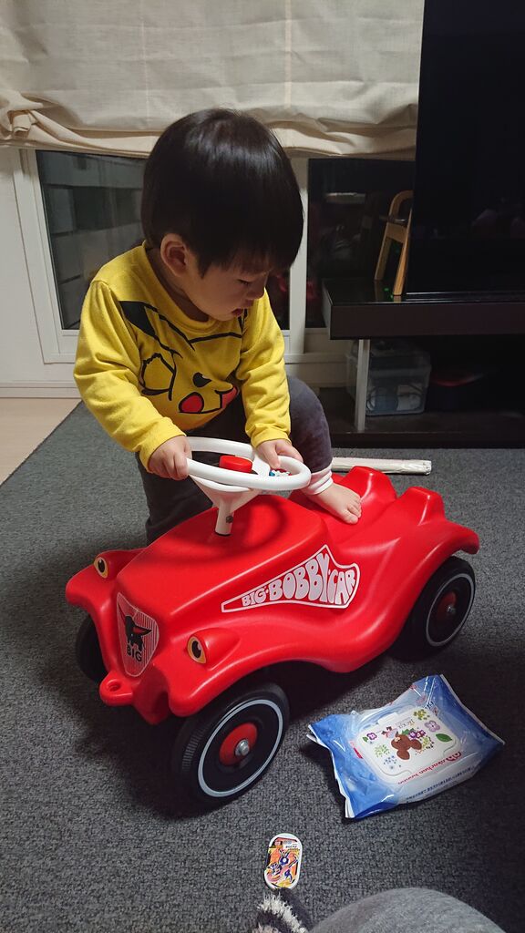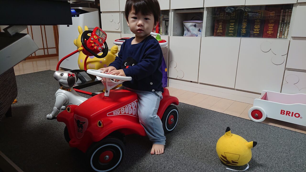 ただ、息子①の時と比べると他の玩具が豊富にある事もあり、RODYや足蹴り車で遊ぶ頻度はそれほど高くありません。どちらかと言えば、息子①と一緒になって走り回る方が好きなようで、乗り物系にはあまり興味が無いのかもしれません。