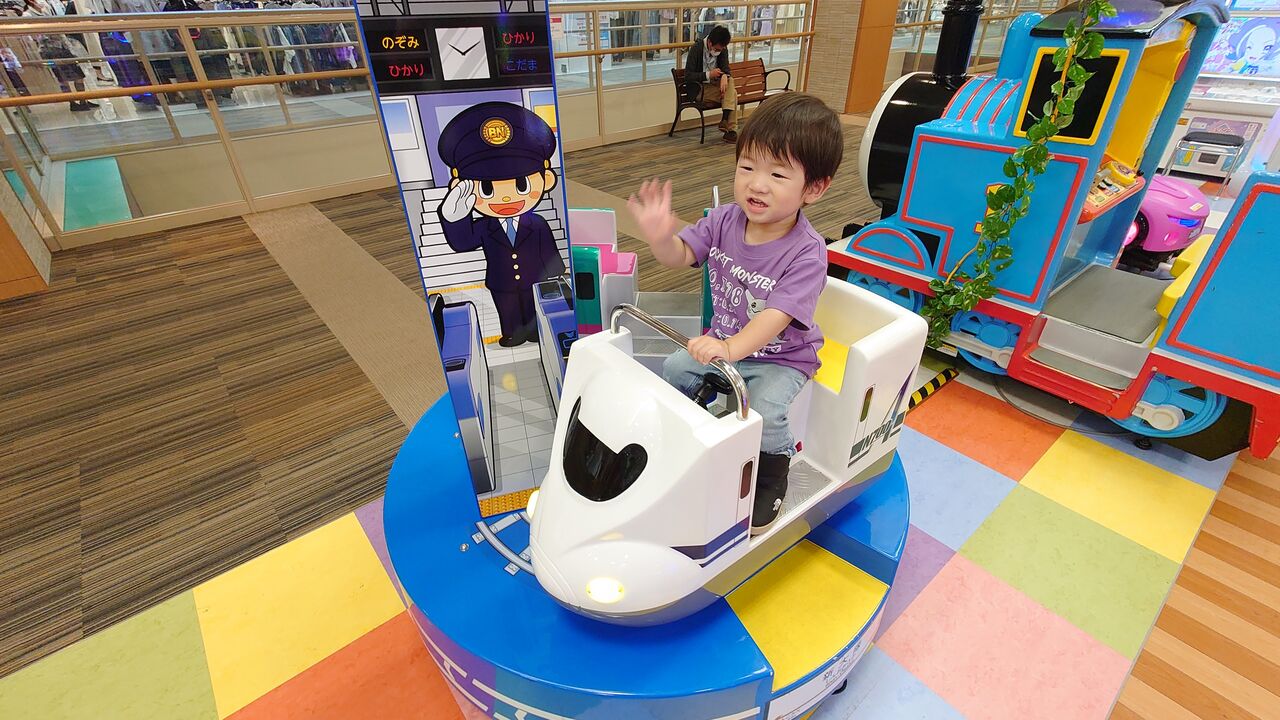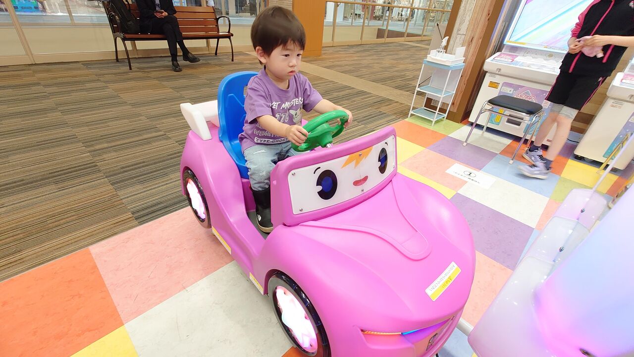 ある程度遊んでいるとまたゲームセンターの方に行ったりもしますが、何かを一回やるとまたキッズコーナーに戻って遊んだりするので、結構忙しいですがそれもまた楽しいようです。