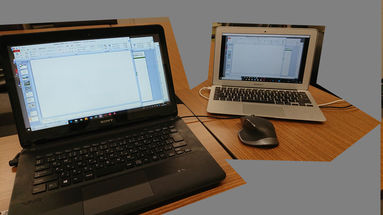 仕事で小型PCを使用している(よくよく考えるとおかしい)上、プレゼンが近々に迫っていたので欲しくもないPCを買う事も考えましたが、緊急対応策としてTap11とほぼ同時期に購入したMacBook Airにその任を託すことにしました。但し、プレゼン自体はすでにPowerPointで作り終えており、いきなりMacOSを持ち込む事はリスクしか無い状況です。