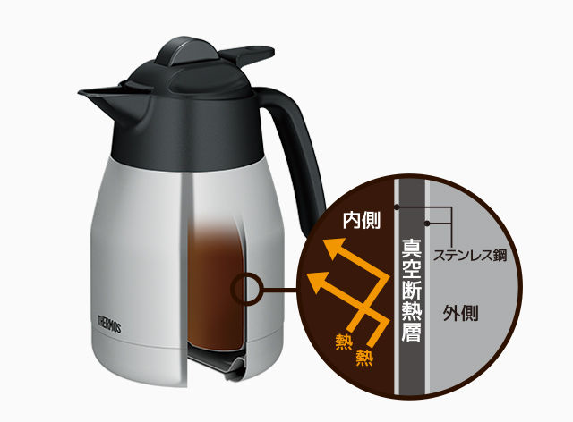 ECH-1001のポットは、ステンレス製魔法びん構造(真空断熱構)造なので、高い保温・保冷力があります。実際抽出からしばらく経った後で飲んでも、それほど冷めておらず美味しいままで保温されています。
