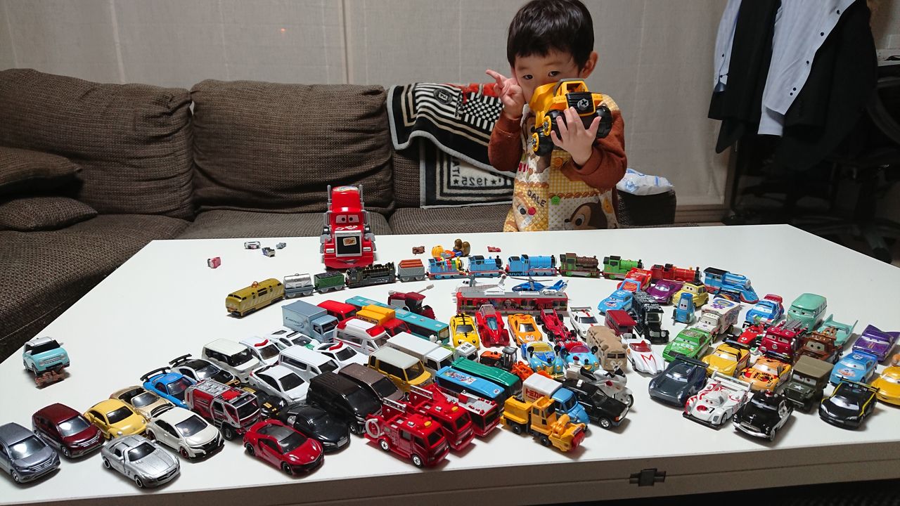 そのため、それらが合わさったカーズトミカの場合、私も嫁さんも高額ではありつつ購入をそれほど躊躇わない裏事情があります。息子は、それを知ってか知らずか急速にカーズトミカに傾倒しており、現状では最高の玩具となっています。