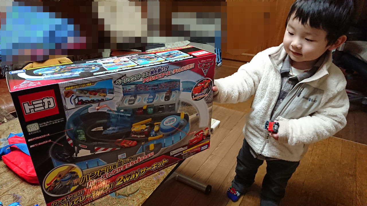 今年の初めにはプラレールにハマっていた息子ですが、ここ最近は一気にトミカへと興味の対象が移り変わったのは当ブログでも紹介していますが、そのトミカもただのトミカではなく、価格が1.5~2倍もするカーズトミカにドハマリしているのは頭が痛い問題です。そして今回、私の実家に行った際、孫のことになると金銭的な事があまり気にならないジジババが、カーズトミカブームを助長するアイテムを息子に買い与えてしまいました。