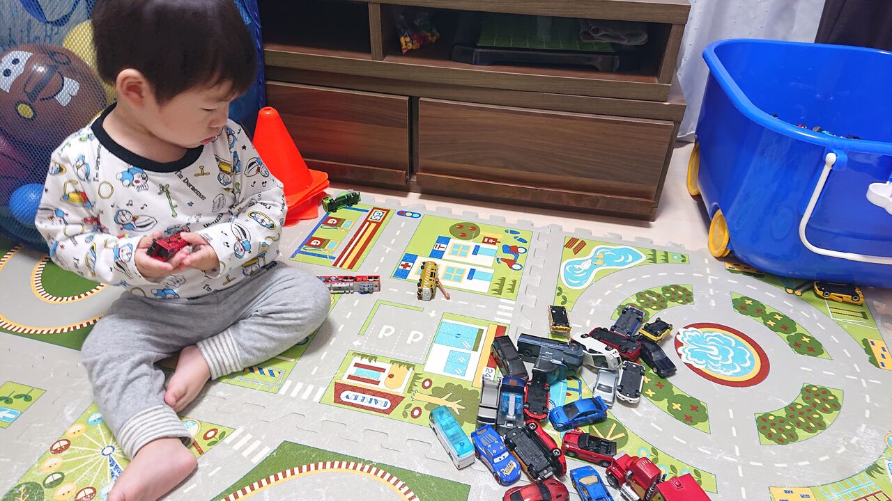 我が家の最大の玩具資産は、おそらくトミカです。息子①が仮面ライダーや戦隊ヒーローにハマる以前は、トミカが最もホットな玩具でしたし、そもそも私がトミカ大好きなので我が家には500台くらいのトミカと関連商品が幾つかあります。息子①がトミカへの情熱を失った後、つい最近までほとんど触ることがありませんでしたが、先月あたりから息子②が自発的に息子①専用部屋に入っていって1人でトミカで遊ぶようになりました。