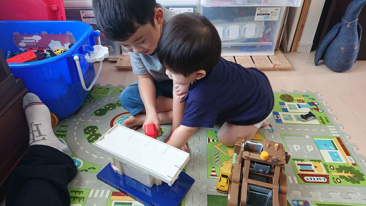 ここ1か月くらいは、さらにその傾向が強くなり、2人だけで遊ぶ姿も見られるようになりました。息子②に関してはスタンドプレーでしかありませんし、息子①も自分の世界に入りがちではあるものの、同じ空間に2人だけで一定時間でも置いておけるのは、私や嫁さんにとって物凄い驚きです。