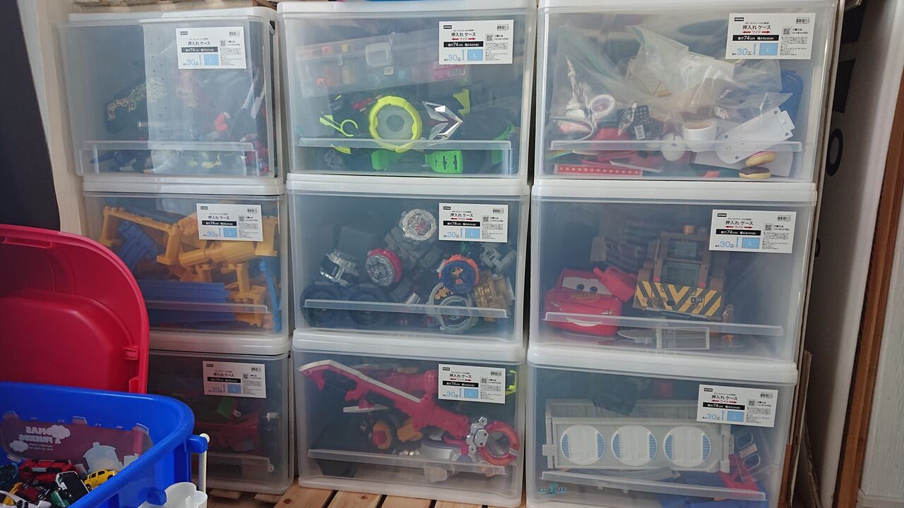 玩具というのは、子どもの年齢や趣向によって必要なモノがコロコロ変わります。もちろん1つの玩具をずっと遊び続ける子どももいると思いますが、多くの子どもは興味の対象が時々刻々と変化しますし、その年令に応じて必要な遊ぶ難易度も異なるため、なんだかんだと玩具が増えてくるのは必然だと考えています。