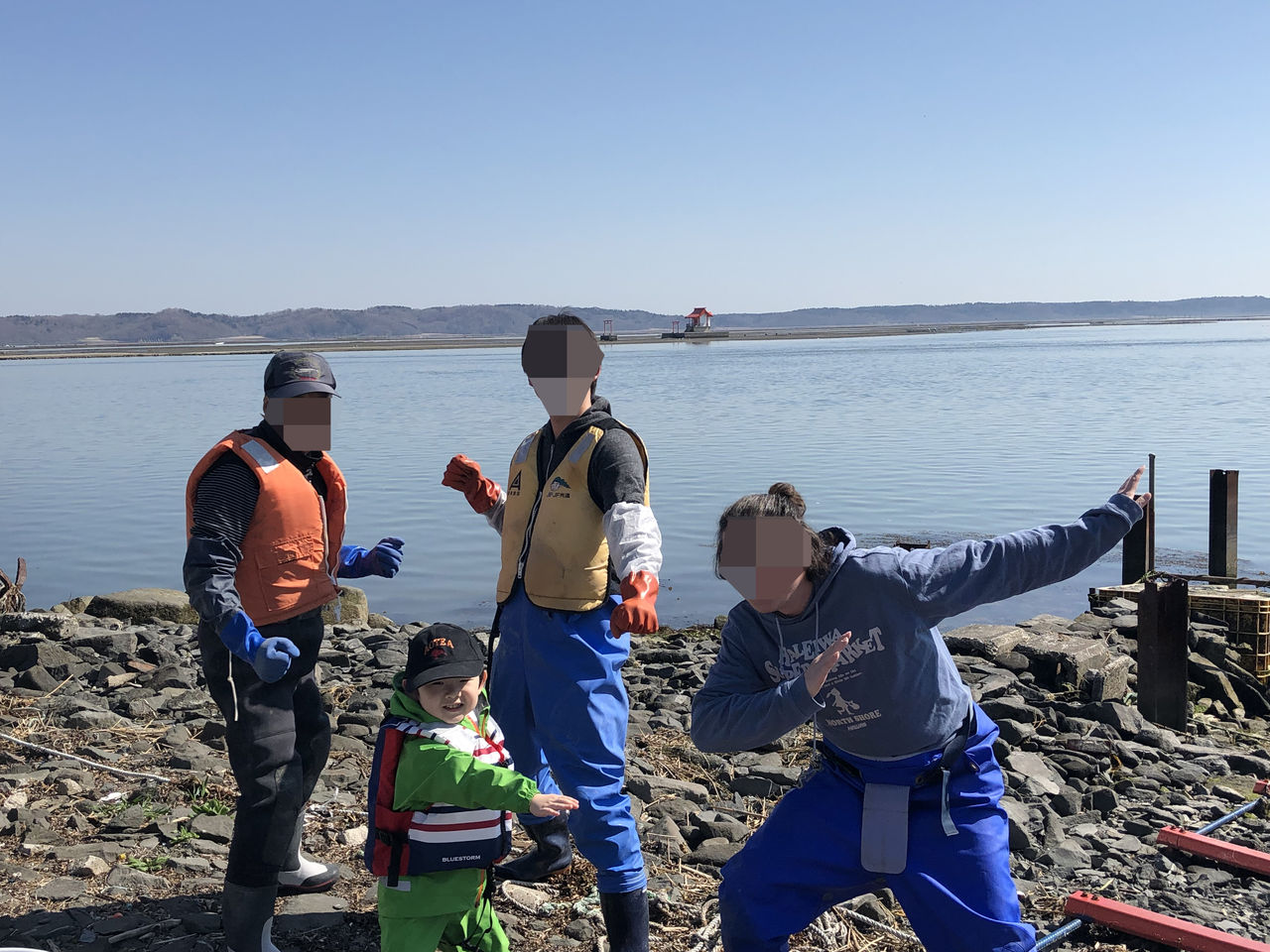 嫁さんの実家に行くと毎回体験しているのが、あさり掘りです。今年は同じ時期に嫁さんの親戚が内地から来ており、大人数(8人)でのあさり掘り体験となりました。息子は昨年のGWで初めて本格的なあさり掘り体験をしましたが、1年経ってだいぶ自分自身で長い時間掘る事ができるようになりました。道具も大人と同じものを使い、小さいサイズの個体はまた来年ね~と言って逃がしており、よく観察しているなと感心します。