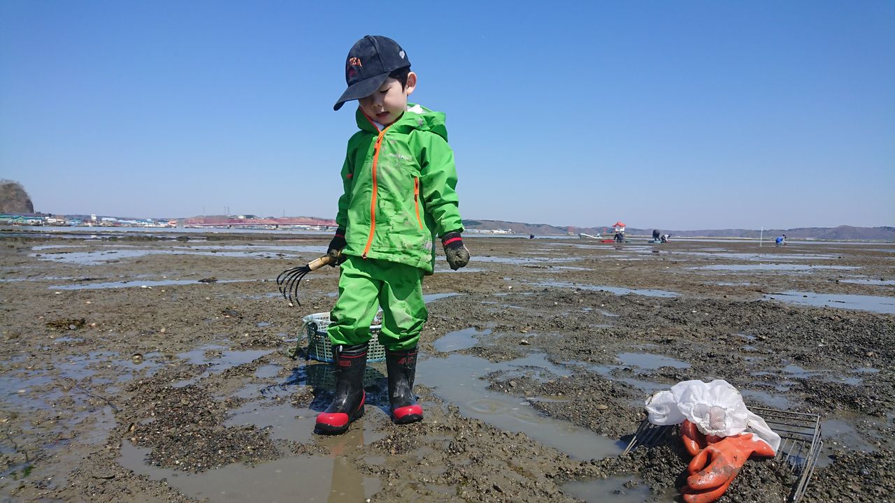 息子は昨年のGWで初めて本格的なあさり掘り体験をしましたが、1年経ってだいぶ自分自身で長い時間掘る事ができるようになりました。道具も大人と同じものを使い、小さいサイズの個体はまた来年ね~と言って逃がしており、よく観察しているなと感心します。