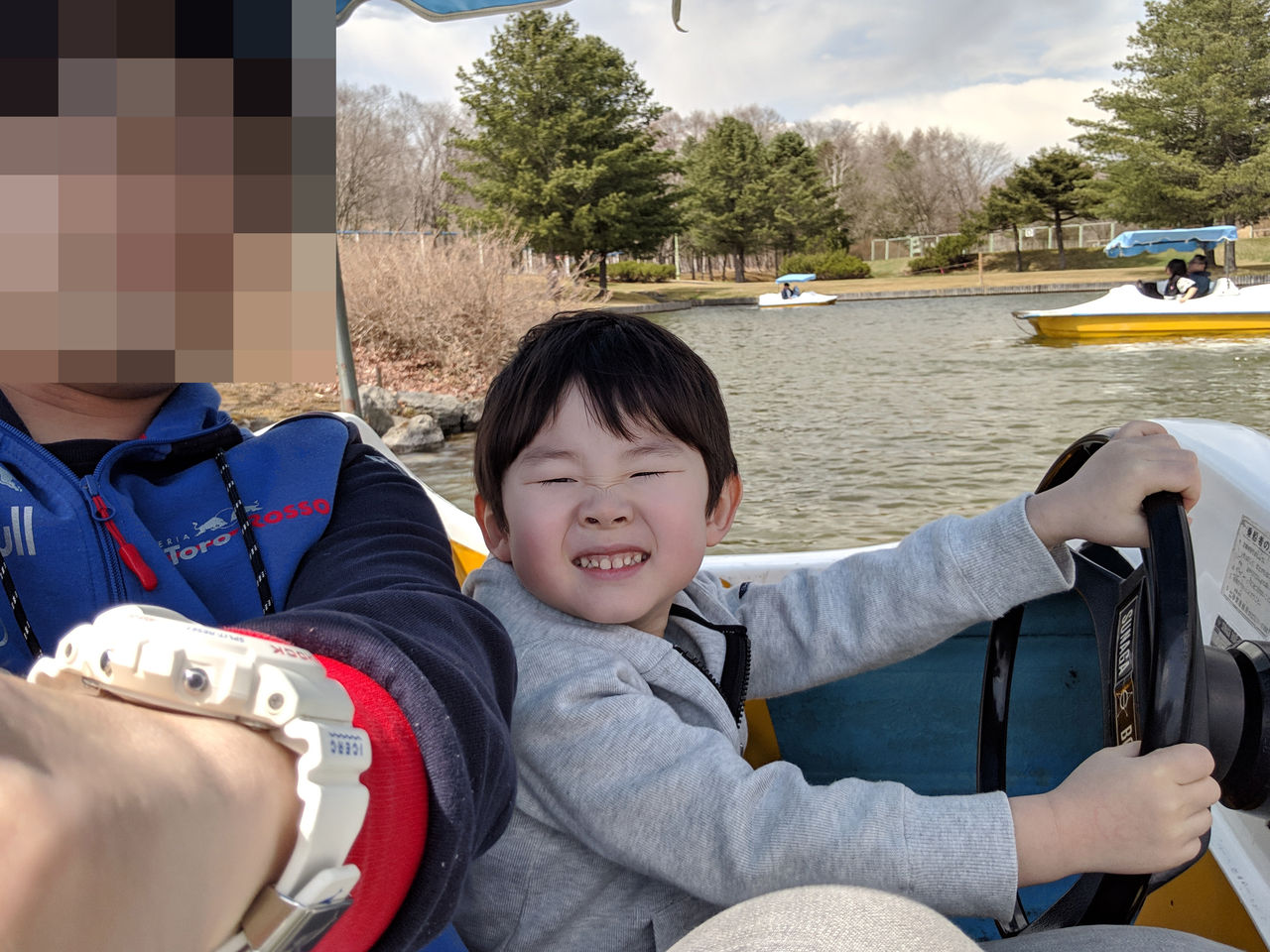 比較的コース全長があるゴーカートを楽しみ、次は息子の希望によりボートに乗車します。こちらも典型的なスワンボートでしたが、当日は風が強く気を抜くと流されてしまうほどだったので、たった15分ですが汗だくです。