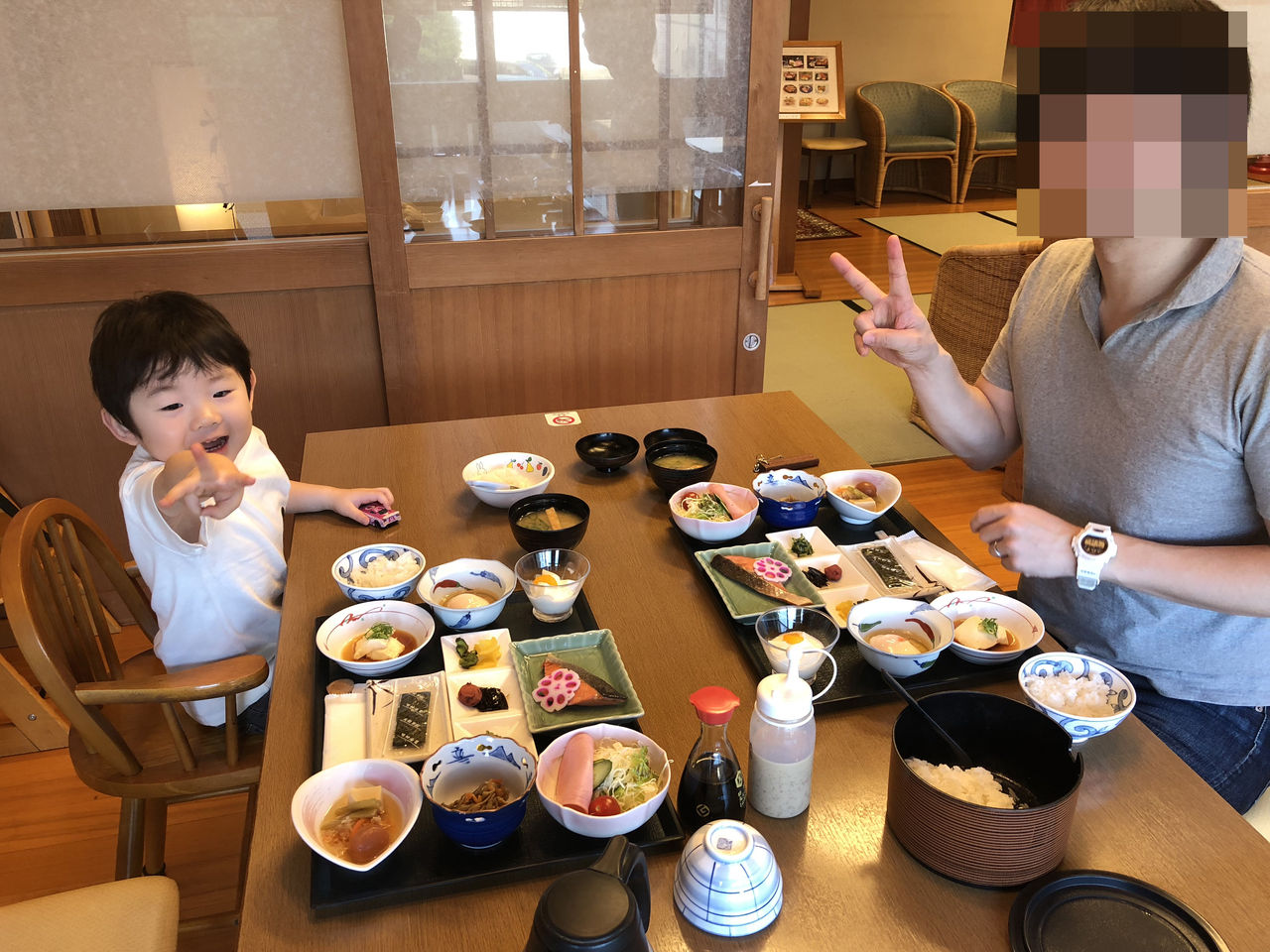 初日は飛行機による移動もあり、3人共疲れていたので早めに就寝。布団なので息子が落ちる心配をしなくて良いのですが、夜中ふと目が覚めると案の定畳の上に大の字になっている息子を見てつい笑ってしまいました。