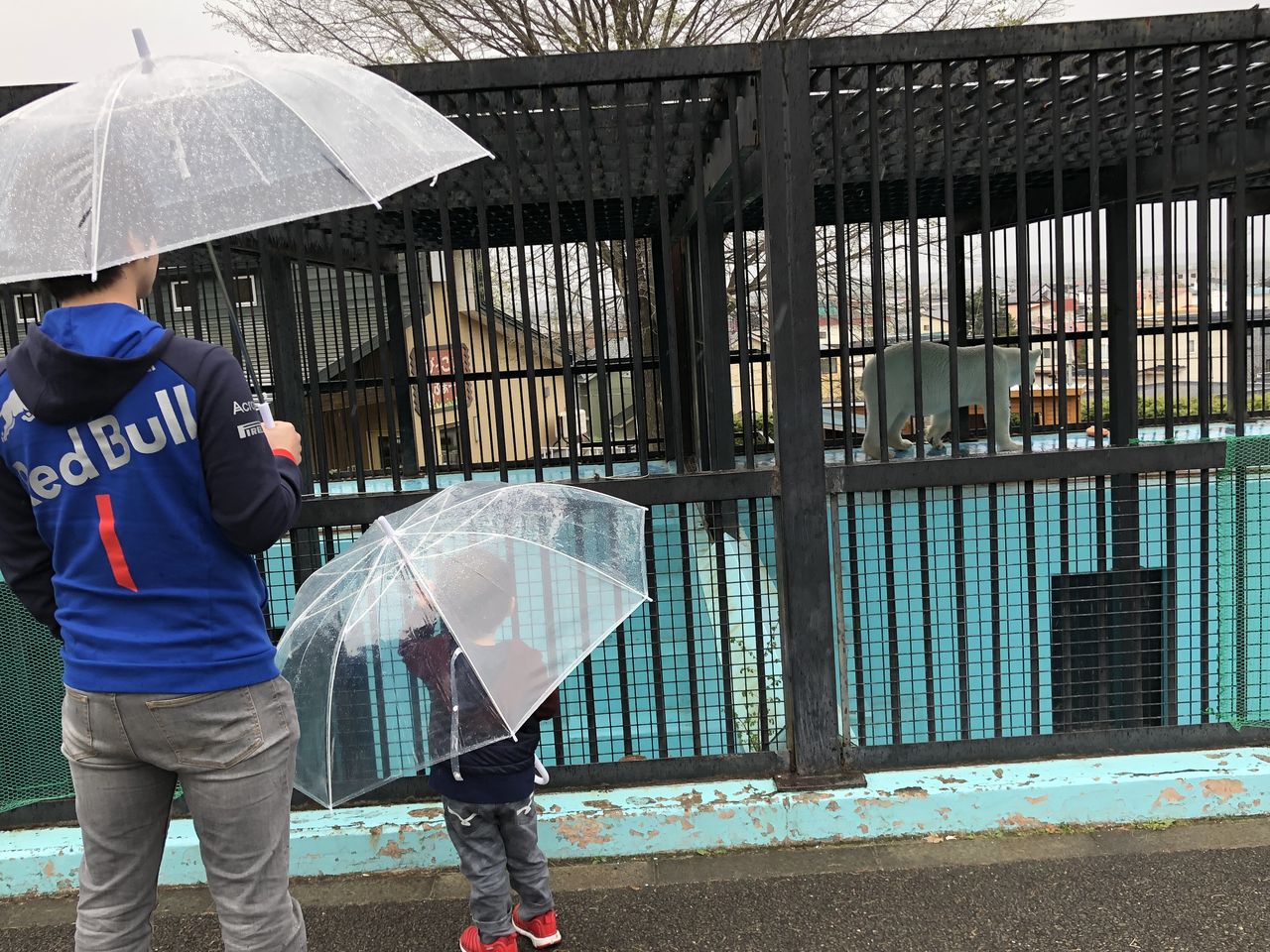 次に園の反対側にあるライオンなどがあるエリアへ移動します。息子は基本的に自分で傘を持ちながら歩いて園を散策しており、よほど動物園が好きなんだなと思います。