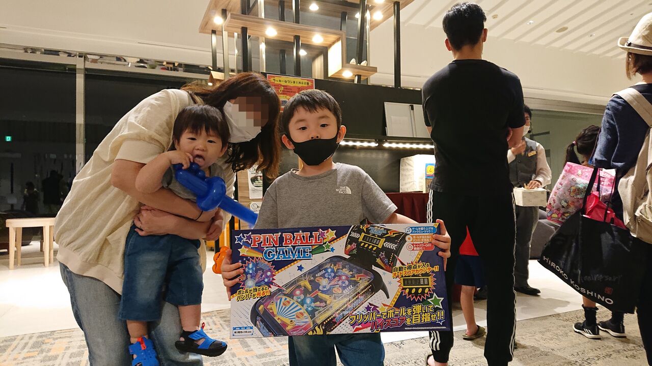 すると、なんと息子①が2番目の早さでビンゴ!!! 狙っていたゲームをゲットする事ができました。大物景品だけに、息子①がその景品を選ぶと溜息も聞こましたが、そんなことは全く意に介さない様子で大喜びする息子①がとても可愛かったです。