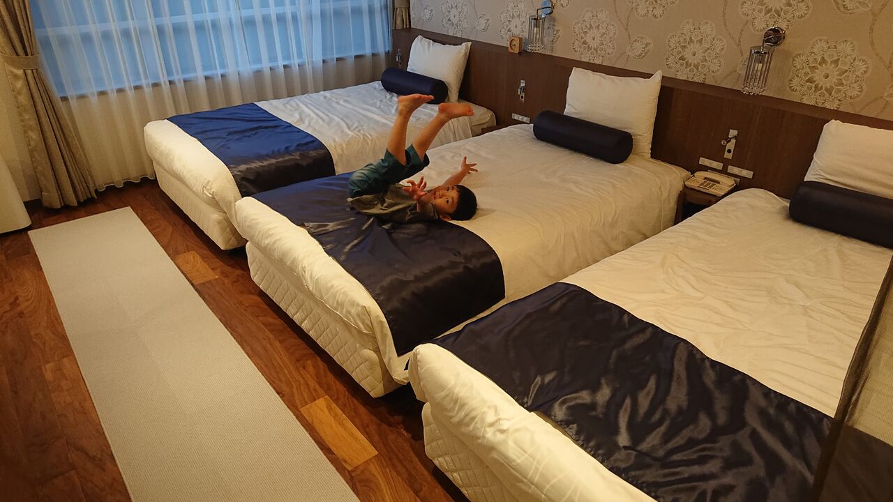 今回のお部屋は、レディーストリプルルームです。前回宿泊したキッズスペシャルルームが残念ながら満室だったのですが、ツインと大差ない値段でトリプルが空いていました。
