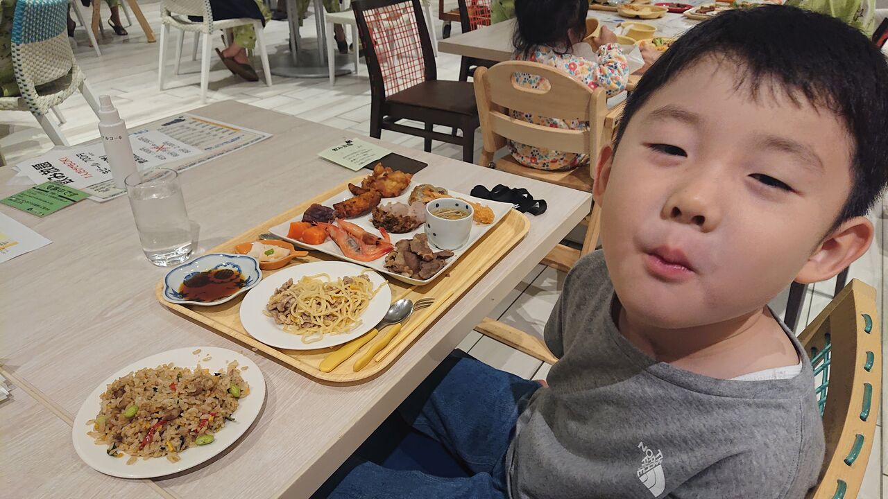ビンゴ大会の後、子どもたちを早々に寝かせて嫁さんと2人で飲んでいましたが、2人の子どもが無事に大きくなっていくのを見れるのは本当に幸せだなと思った夜でした。翌朝、いつも通り無駄に早く起きた息子①に起こされ、朝風呂に入った後、朝飯の時間となりました。何故かドラえもんの着ぐるみを寝間着として持ってきた嫁さんですが、朝飯にもドラえもんの格好のまま行かせるようです。可愛いけど、ちょっと恥ずかしいですよね。