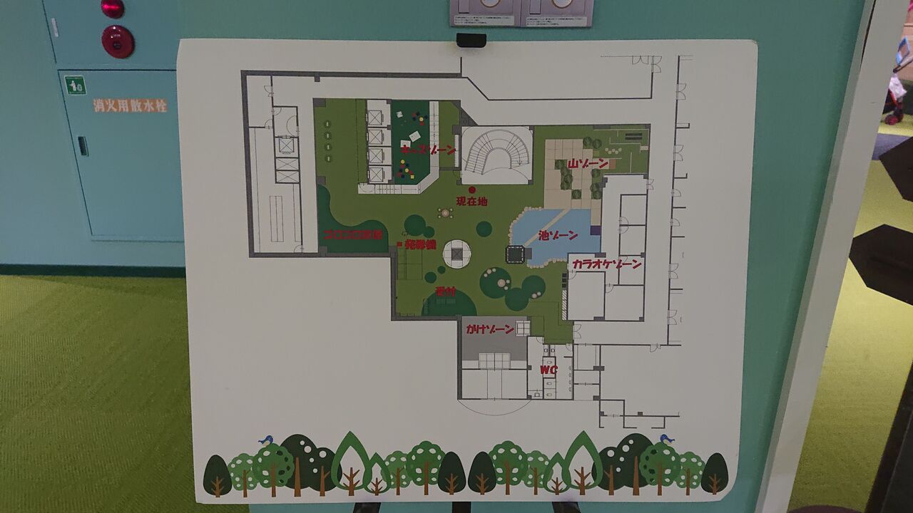 屋内遊具パーク ア・ソ・ボーヤは、フロント近くの階段を降りたところにありました。大きくは、山ゾーン、池ゾーン、がけゾーン、キッズゾーン、そしてカラオケゾーンとなっています。チェックインの時間まではココで遊ぶ予定なので、早速息子①と息子②をア・ソ・ボーヤに投入して遊ばせます。