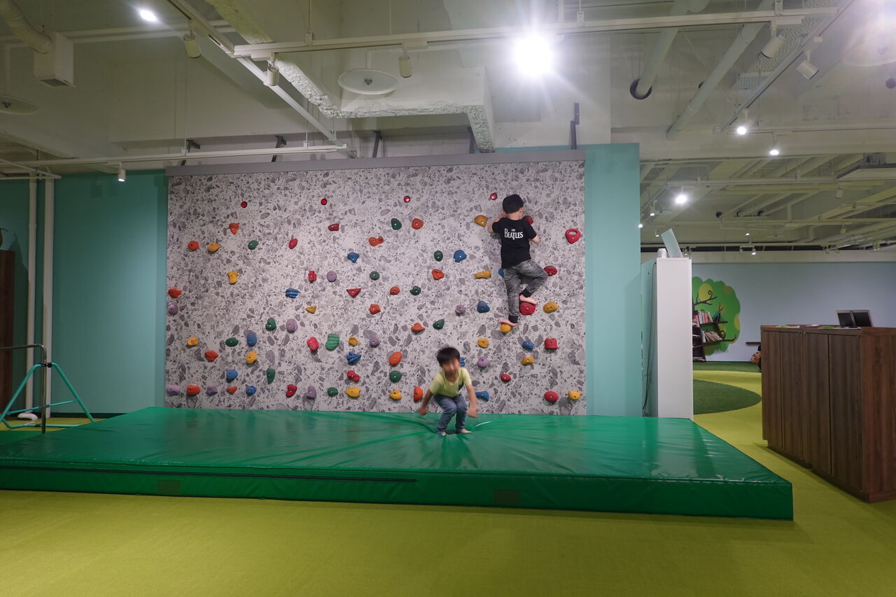 本格的なロッククライミングもがけゾーンにありますが、息子①だとまだ体験ができないため、子ども用ボルダリングで遊びます。