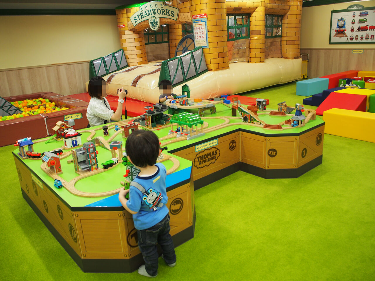 昼過ぎに訪れたところ、確かにかなりの人が来ていましたが、何も出来ないほどの大混雑というわけではありませんでしたので、有料ゾーンであるトーマスのわくわくひろばで軽く遊びました。