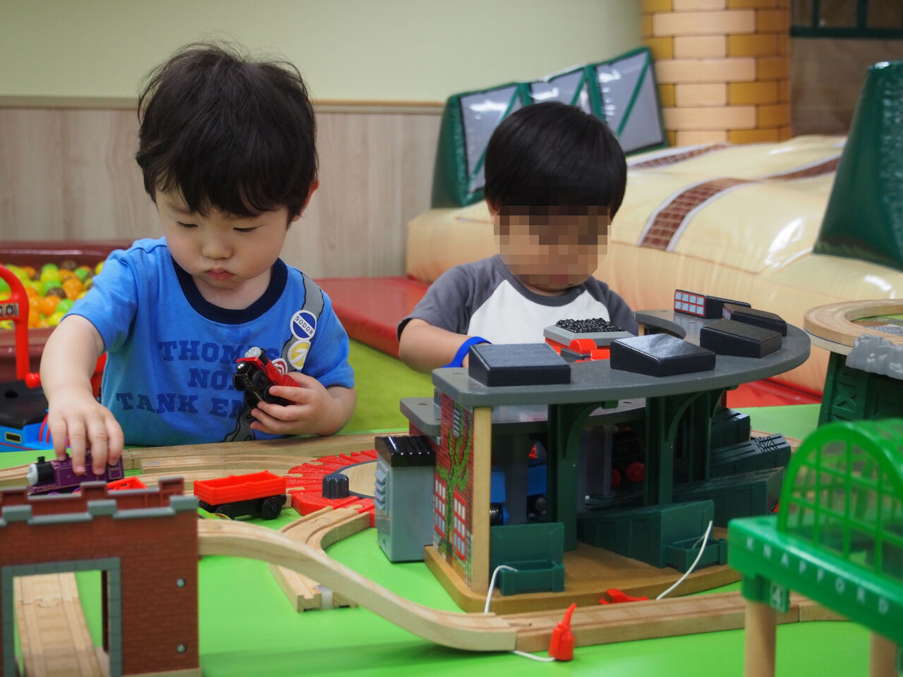 ビビリな性格の息子ですが、大好きなトーマスに囲まれて自然とテンションは上昇していきます。まだ場所慣れをしていないので、本領発揮とまではいきませんでしたが、随分と楽しそうに遊んでいたのが印象的です。
