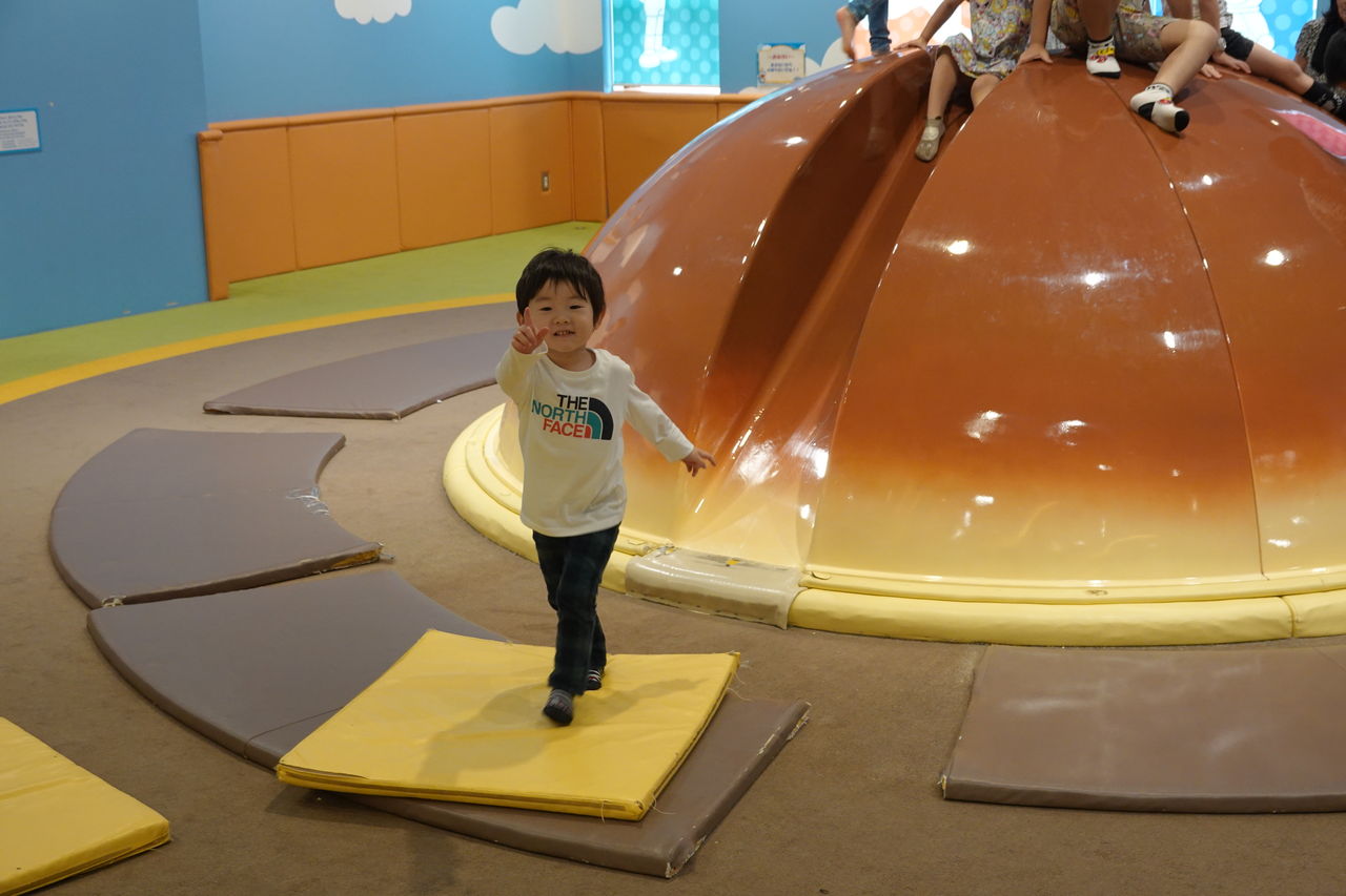 昼過ぎの便で新千歳空港に到着する予定の友人(=前出の学生)をただ待つのも何なので、ドラえもんわくわくスカイパークのキッズフリーゾーンで息子を遊ばせていました。国際線の場合は特に到着時刻が変更になる事が良くあるので、無料で子どもを遊ばせられる施設が空港内にあるのは非常に有り難く思います。