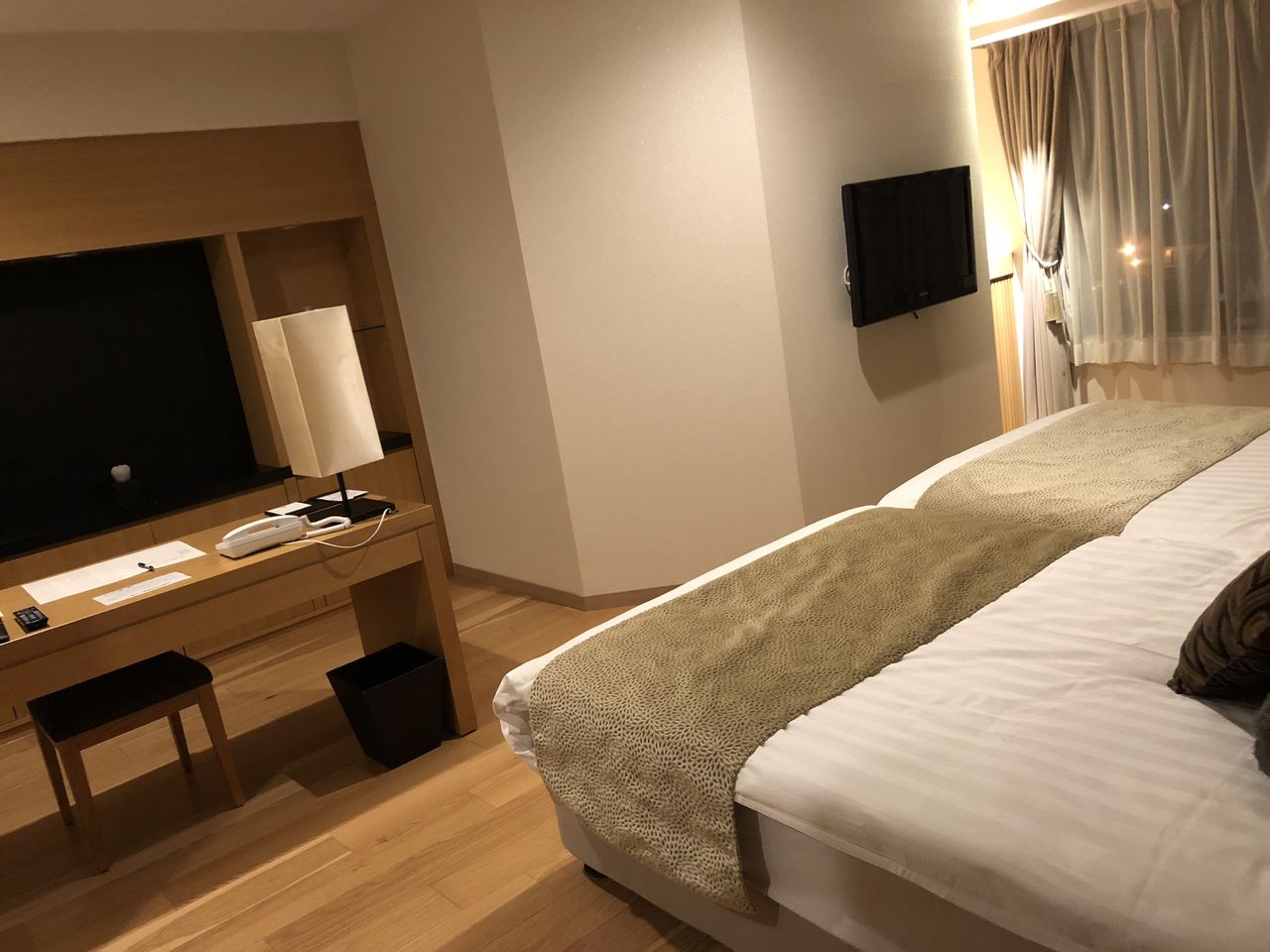 2歳児を予約入れて3人が泊まる部屋としてはあまりに広く、場馴れしていない我々はただただ焦るばかりです。当初は和室に布団を敷くのかと思いましたが、部屋を探索しているとなんとベッドルームまでありました。