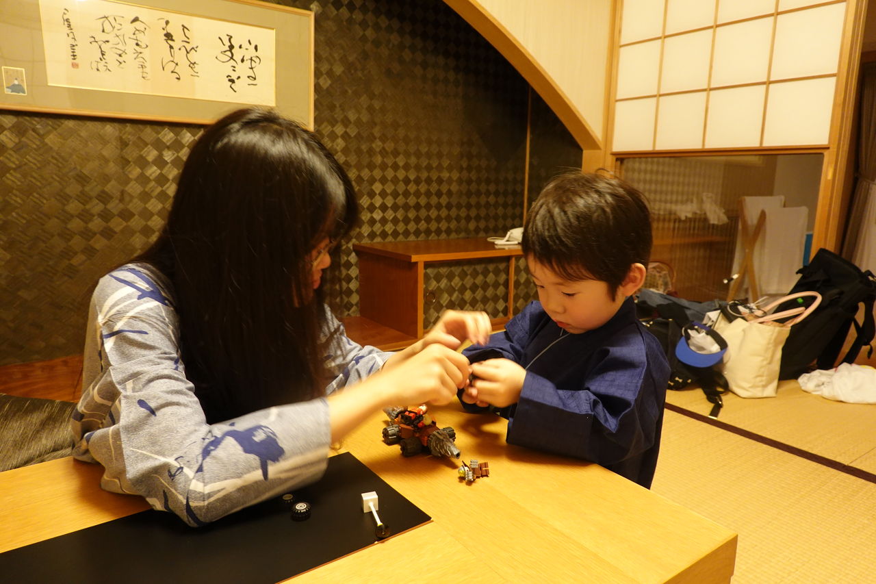 花火大会の後もテンションが上がりっぱなしの息子は一向に寝る気配が無く、友人が息子へのお土産で買ってきてくれたLEGOを友人と一緒に作って遊んだりしていました。